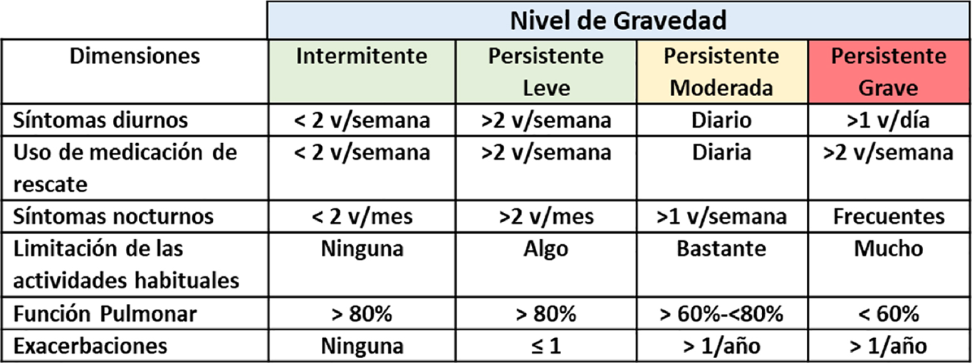 categorización de la gravedad del asma se basa en la frecuencia de la aparición
