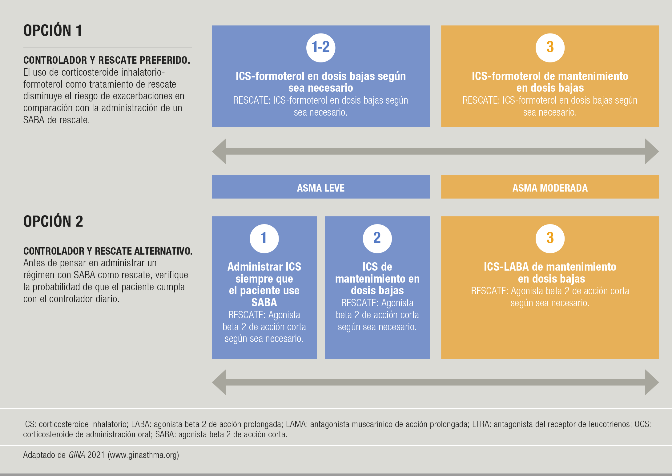del tratamiento en adultos y adolescentes (adaptada de GINA 2021).